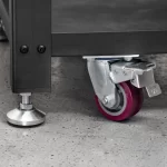 Ocelové nohy jsou vybaveny čtyřmi kolečky s aretací a vyrovnávacími nožičkami pro mobilní nebo stacionární použití.