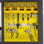 Police, regály a panel s věšáčky umožňují ukládat, organizovat a udržovat svěrky a příslušenství na dosah.