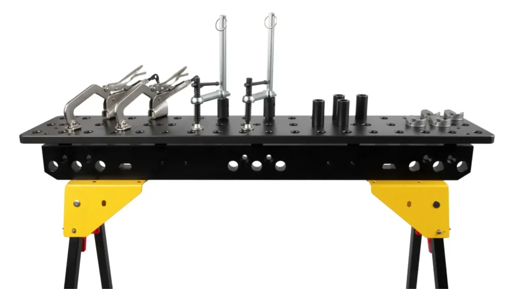 Když se práce přesouvá, vaše vybavení by mělo držet krok. Díky odolným pracovním plochám, deskám připraveným pro upínání a maximálně stabilní konstrukci vám tento pracovní stojan pomůže udržet efektivní a přesnou práci i mimo dílnu.