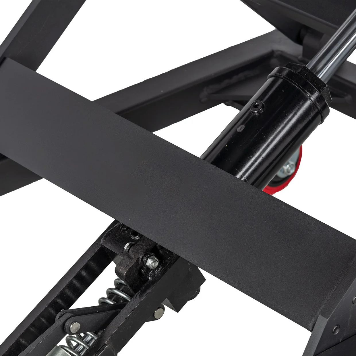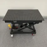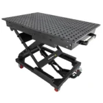 Manuálně-hydraulický zvedací mechanismus umožňuje výškové nastavení a je vybaven pevnou pracovní deskou o rozměrech 1200 × 750 mm, která je identická s originálním Rhino Cartem.
